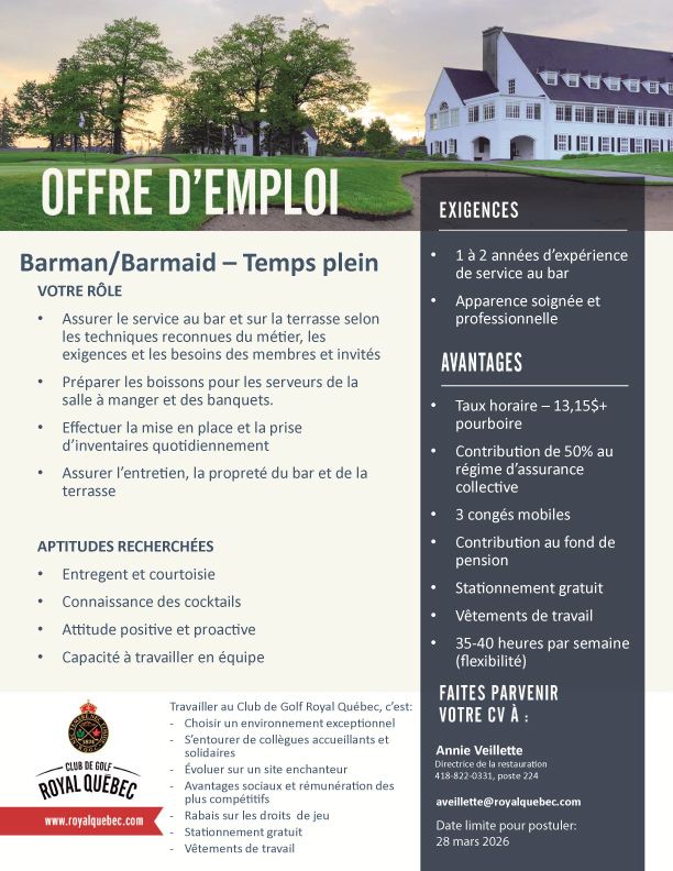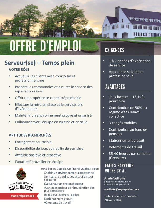 L’équipe du Royal Québec attend avec impatience votre candidature.